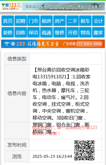 免责声明:本栏目信息由网友自行发布,邢台123不承担任何责任!提高警惕,谨防诈骗!做推广、做信息置顶!请加邢台123客服微信:cnxingtai
