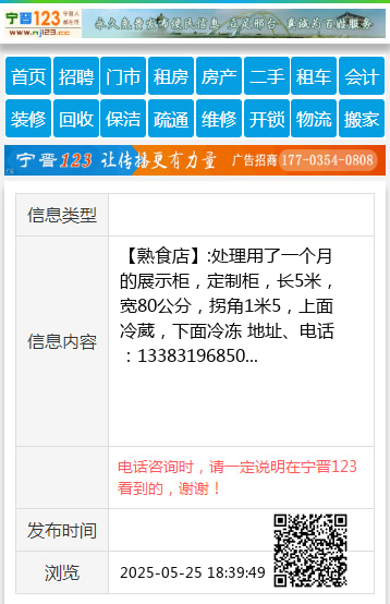 【熟食店】:处理用了一个月的展示柜,定制柜,长5米,宽80公分,拐角1米5,上面冷葳,下面冷冻 地址、电话:13383196850