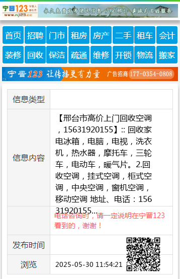 【邢台市高价上门回收空调,15631920155】:: 回收家电冰箱,电脑,电视,洗衣机,热水器,摩托车,三轮车,电动车,暖气片。2.回收空调,挂式空调,柜式空调,中央空调,窗机空调,移动空调 地址、电话:15631920155