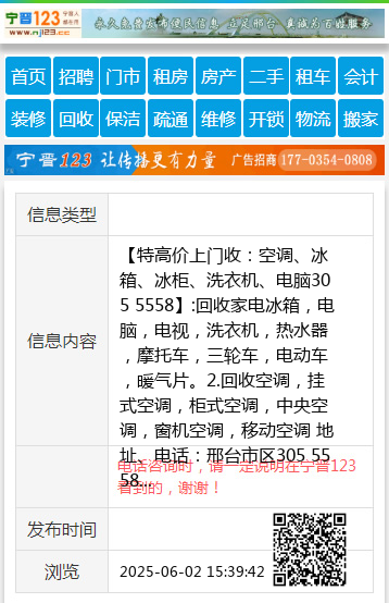 【邢台旧货回收】:: 高价回收空调,柜机,挂机,中央空调,废品空调。办公桌椅,老】: 上门回收:1.空调,中央空调,柜机空调,挂机空调,窗机空调,所有新旧空调。上下铺,冰箱丶冰柜、洗衣机、热水器、酒店,液晶电视。广告机,等各种家电.2.家具,衣柜、沙发。单人床, 双人床,办公家具.3.电脑 ,台式电脑主机,显示器,笔记本,(学校及网吧淘汰机).4.饭店桌椅板凳,厨房用品.5.电动车,摩托车,电瓶,旧电动自行车 地址、电话:13831933057
