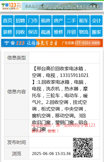【邢台高价回收家电冰箱,空调,电视,13315911021】:1.回收家电冰箱,电脑,电视,洗衣机,热水器,摩托车,三轮车,电动车,暖气片。2.回收空调,挂式空调,柜式空调,中央空调,窗机空调,移动空调。3回收旧门窗,塑钢门窗,铝合金门窗,断桥铝门窗,拆卸各种门窗制冷设备 地址、电话:桥东5208787桥西2224399 |