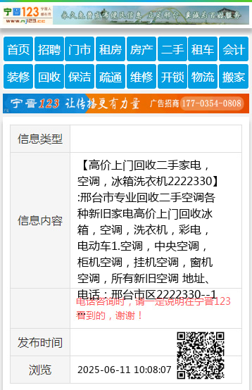 【邢台市专业回收二手空调2222330】:回收家电冰箱,电脑,电视,洗衣机,热水器,摩托车,三轮车,电动车,暖气片。2.回收空调,挂式空调,柜式空调,中央空调,窗机空调,移动空调 地址、电话:邢台市区2222330--16630957087
