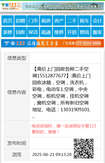 【高价上门回收各种二手空调15512877677】:高价上门回收冰箱,空调,洗衣机,彩电,电动车1.空调,中央空调,柜机空调,挂机空调,窗机空调,所有新旧空调 地址、电话:13031909101