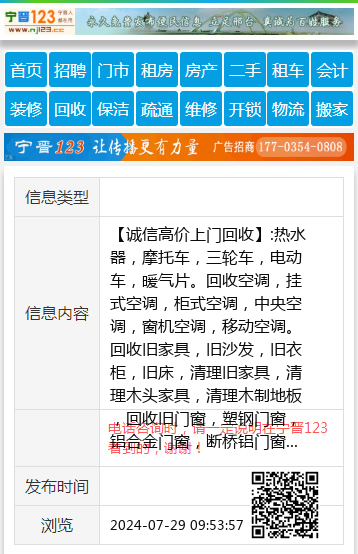 【诚信高价上门回收】:热水器,摩托车,三轮车,电动车,暖气片。回收空调,挂式空调,柜式空调,中央空调,窗机空调,移动空调。回收旧家具,旧沙发,旧衣柜,旧床,清理旧家具,清理木头家具,清理木制地板,回收旧门窗,塑钢门窗,铝合金门窗,断桥铝门窗,拆卸各种门窗一切废旧物资回收办公家具,网吧清空,饭店用品,桌椅板凳,厨房用品,制冷设备,拆除门窗,0319-3826650 13229890839 18333985418同步 地址、电话:开元路18333985418 |