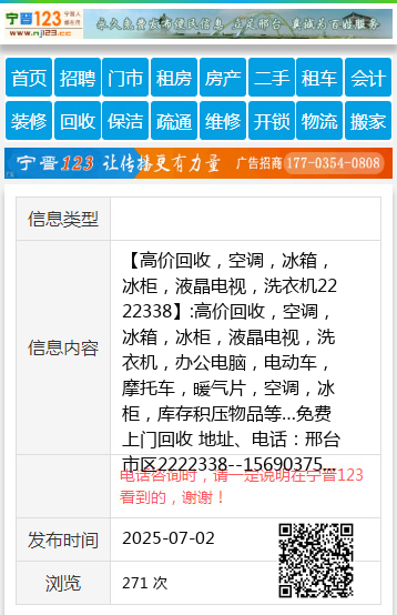 免责声明:本栏目信息由网友自行发布,邢台123不承担任何责任!提高警惕,谨防诈骗!做推广、做信息置顶!请加邢台123客服微信:cnxingtai
