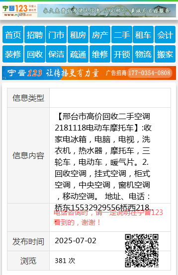 【邢台市高价回收二手空调2181118】:回收家电冰箱,电脑,电视,洗衣机,热水器,摩托车,三轮车,电动车,暖气片。2.回收空调,挂式空调,柜式空调,中央空调,窗机空调,移动空调 地址、电话:桥东15532929556桥西2181118