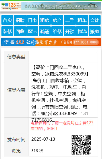 【邢台市专业回收二手空调2222131】:回收家电冰箱,电脑,电视,洗衣机,热水器,摩托车,三轮车,电动车,暖气片。2.回收空调,挂式空调,柜式空调,中央空调,窗机空调,移动空调 地址、电话:邢台市区2222131--15630926681