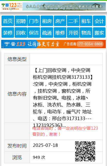【上门回收空调,中央空调柜机空调挂机空调3173133】:空调,中央空调,柜机空调,挂机空调,窗机空调,所有新旧空调。电视,冰箱丶冰柜、洗衣机、热水器、三轮车,电动车,暖气片 地址、电话:邢台市3173133---13231925363