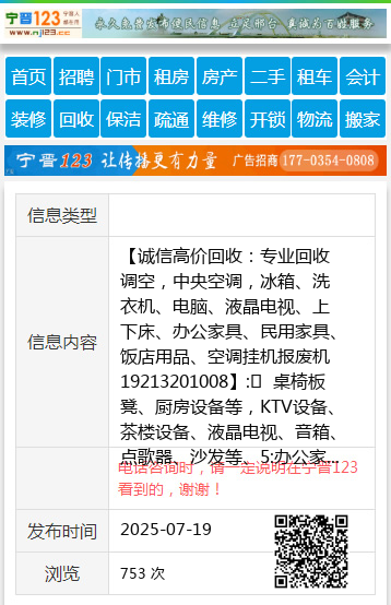 【诚信高价回收:专业回收调空,中央空调,冰箱、洗衣机、电脑、液晶电视、上下床、办公家具、民用家具、饭店用品、空调挂机报废机19213201008】: 桌椅板凳、厨房设备等,KTV设备、茶楼设备、液晶电视、音箱、点歌器、沙发等、5:办公家具、办公电脑、上下床、茶台、桌椅等,6:厨房设备四门柜,制冷工作台,展示柜等。7:工地废旧物资、电缆、电焊机、废铁等,8:电动车、库存积压更新换代物资、清理仓库、商场空调、 地址、电话:24小时开机电话19213201008 上门回收 |