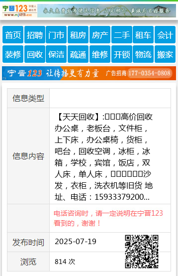 【☎️13211087598邢台上门回收家具家电废旧空调,一切二手废旧物资,办公家具】:1.回收家电冰箱,电脑,电视,洗衣机,热水器,摩托车,三轮车,电动车,暖气片。2.回收空调,挂式空调,柜式空调,中央空调,窗机空调,移动空调。3.回收旧家具,旧沙发,旧衣柜,旧床垫4.回收旧门窗,塑钢门窗,铝合金门窗,断桥铝门窗,拆卸各种门窗一切废旧物资5.回收办公家具,网吧清空,饭店用品,桌椅板凳,厨房用品,制冷设备。 地址、电话:手机13211087598 上门回收