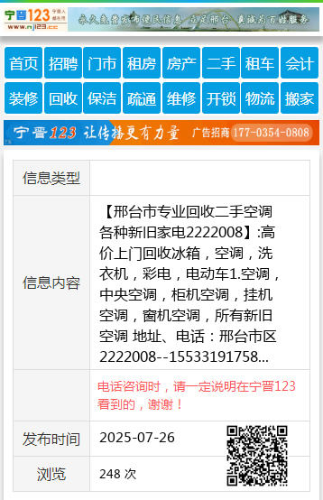 免责声明:本栏目信息由网友自行发布,邢台123不承担任何责任!提高警惕,谨防诈骗!做推广、做信息置顶!请加邢台123客服微信:cnxingtai