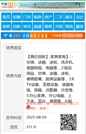 【高价回收】:家具家电】: :空调、冰箱、冰柜、洗衣机、液晶电视、电脑等,2:饭店用品、空调、冰箱、冰柜、桌椅板凳、厨房设备等,3:KTV设备、茶楼设备、液晶电视、音箱、点歌器、沙发等、5:办公家具、办公电脑、上下床、茶台、桌椅等,6:厨房设备四门柜,制冷工作台,展示柜等。7:工地废旧物资、电缆、电焊机、废铁等,8:电动车、摩托车、库存积压更新换代物资、清理仓库、商场空调、冰箱、冰柜、洗衣机残机样机等。一切旧货回收地址、电话:18730961956 地址、电话:18730961956 |
