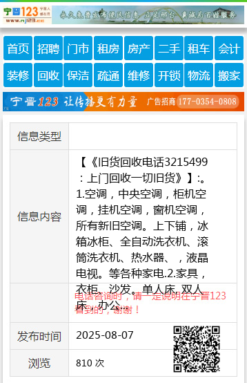 【《旧货回收电话3215499:上门回收一切旧货》】:。1.空调,中央空调,柜机空调,挂机空调,窗机空调,所有新旧空调。上下铺,冰箱冰柜、全自动洗衣机、滚筒洗衣机、热水器、,液晶电视。等各种家电.2.家具,衣柜、沙发。单人床, 双人床,办公家具.3.电脑 ,台式电脑主机,显示器,笔记本,(学校单位及网吧淘汰机).4.饭店桌椅板凳,厨房用品.5.电动车,摩托车,电瓶.6.银行设备,饭店用品,蛋糕房用品,办公家具,单位企业设备, 《拆除代扔废旧家具。》 地址、电话:手机号15531995951 上门回收 |