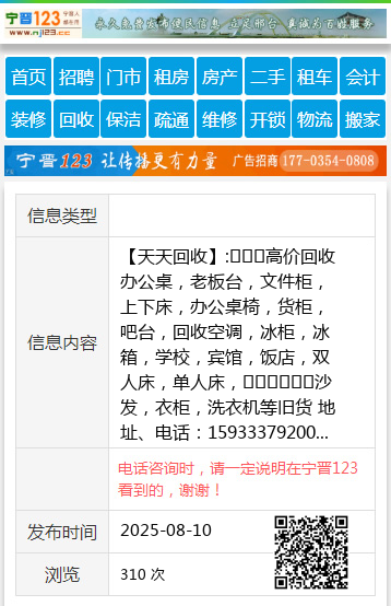 【邢台旧货回收】:高价回收空调,柜机,挂机,中央空调,废品空调。办公桌椅,老】: 上门回收:1.空调,中央空调,柜机空调,挂机空调,窗机空调,所有新旧空调。上下铺,冰箱丶冰柜、洗衣机、热水器、酒店,液晶电视。广告机,等各种家电.2.家具,衣柜、沙发。单人床, 双人床,办公家具.3.电脑 ,台式电脑主机,显示器,笔记本,(学校及网吧淘汰机).4.饭店桌椅板凳,厨房用品.5.电动车,摩托车,电瓶,旧电动自行车 地址、电话:13831933057