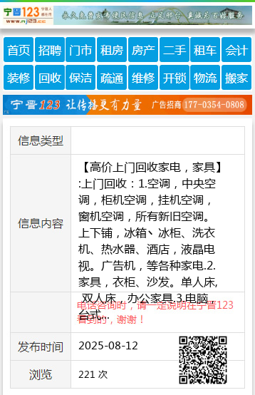【高价上门回收家电,家具】:上门回收:1.空调,中央空调,柜机空调,挂机空调,窗机空调,所有新旧空调。上下铺,冰箱丶冰柜、洗衣机、热水器、酒店,液晶电视。广告机,等各种家电.2.家具,衣柜、沙发。单人床, 双人床,办公家具.3.电脑 ,台式电脑主机,显示器,笔记本,(学校及网吧淘汰机).4.饭店桌椅板凳,厨房用品.5.电动车,摩托车,电瓶. 6等一切库房积压物品 地址、电话:13102578786 |