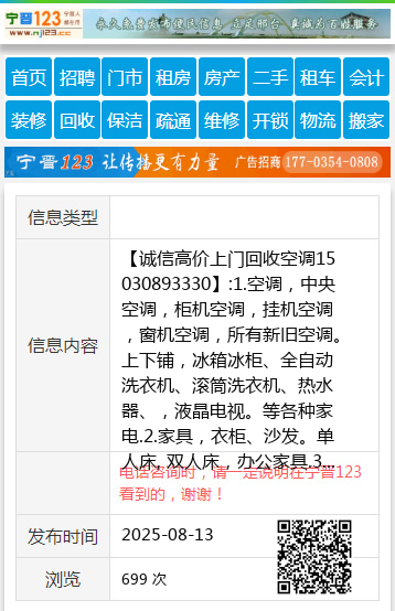【诚信高价上门回收空调15030893330】:1.空调,中央空调,柜机空调,挂机空调,窗机空调,所有新旧空调。上下铺,冰箱冰柜、全自动洗衣机、滚筒洗衣机、热水器、,液晶电视。等各种家电.2.家具,衣柜、沙发。单人床, 双人床,办公家具.3.电脑 ,台式电脑主机,显示器,笔记本,(学校单位及网吧淘汰机).4.饭店桌椅板凳,厨房用品.5.电动车,摩托车,电瓶.6.银行设备,饭店用品,蛋糕房用品,办公家具,单位企业设备, 地址、电话:15030893330 |