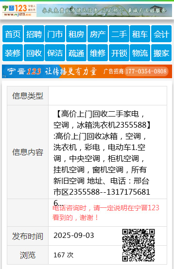 【高价上门回收二手家电,空调,冰箱洗衣机2355588】:高价上门回收冰箱,空调,洗衣机,彩电,电动车1.空调,中央空调,柜机空调,挂机空调,窗机空调,所有新旧空调 地址、电话:邢台市区2355588--13171756816