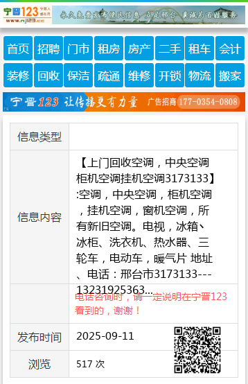 【上门回收空调,中央空调柜机空调挂机空调3173133】:空调,中央空调,柜机空调,挂机空调,窗机空调,所有新旧空调。电视,冰箱丶冰柜、洗衣机、热水器、三轮车,电动车,暖气片 地址、电话:邢台市3173133---13231925363