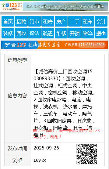 【诚信高价上门回收空调15030893330】:.回收空调,挂式空调,柜式空调,中央空调,窗机空调,移动空调。2.回收家电冰箱,电脑,电视,洗衣机,热水器,摩托车,三轮车,电动车,暖气片。3.回收旧家具,旧沙发,旧衣柜,旧床垫,旧床,清理旧家具,清理木头家具,清理木制地板,4.回收旧门窗,塑钢门窗,铝合金门窗,断桥铝门窗,拆卸各种门窗一切废旧物资5.回收办公家具 地址、电话:15030893330 |