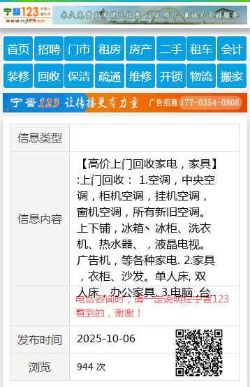 【高价上门回收家电,家具】:上门回收: 1.空调,中央空调,柜机空调,挂机空调,窗机空调,所有新旧空调。上下铺,冰箱丶冰柜、洗衣机、热水器、,液晶电视。广告机,等各种家电. 2.家具,衣柜、沙发。单人床, 双人床,办公家具. 3.电脑 ,台式电脑主机,显示器,笔记本,(学校及网吧淘汰机). 4.饭店桌椅板凳,厨房酒店KTV用品 5.电动车,摩托车,电瓶. 6等一切库房积压物品,诚信交友,期待与您长期合作 地址、电话:13102578786 |