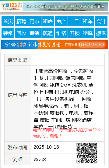 【邢台高价回收 ,全部回收】:幼儿园回收 饭店回收 空调回收 冰箱 冰柜 洗衣机 单位上下铺 打印机电脑 办公, 工厂各种设备机器 , 回收,成品半成品 ,新,铜,铝 不锈钢 废旧铁,电机,变压器 废旧 车间厂房 刚材酒店,学校,一切新旧货全部回收 地址、电话:15075961546,15075961546
