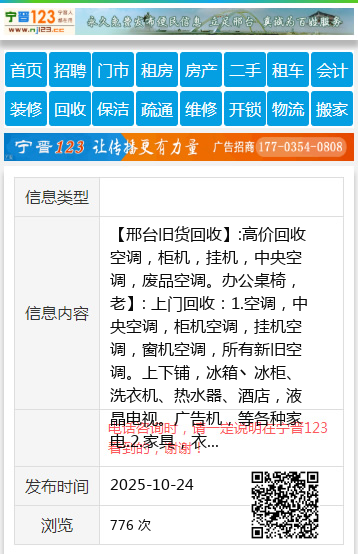 【邢台旧货回收】:高价回收空调,柜机,挂机,中央空调,废品空调。办公桌椅,老】: 上门回收:1.空调,中央空调,柜机空调,挂机空调,窗机空调,所有新旧空调。上下铺,冰箱丶冰柜、洗衣机、热水器、酒店,液晶电视。广告机,等各种家电.2.家具,衣柜、沙发。单人床, 双人床,办公家具.3.电脑 ,台式电脑主机,显示器,笔记本,(学校及网吧淘汰机).4.饭店桌椅板凳,厨房用品.5.电动车,摩托车,电瓶,旧电动自行车 地址、电话:13831933057 |