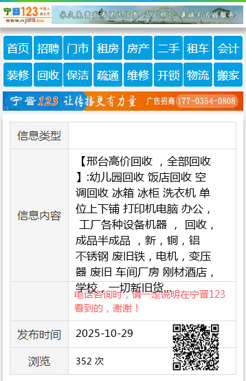 【邢台高价回收 ,全部回收】:幼儿园回收 饭店回收 空调回收 冰箱 冰柜 洗衣机 单位上下铺 打印机电脑 办公, 工厂各种设备机器 , 回收,成品半成品 ,新,铜,铝 不锈钢 废旧铁,电机,变压器 废旧 车间厂房 刚材酒店,学校,一切新旧货全部回收 地址、电话:15075961546,15075961546
