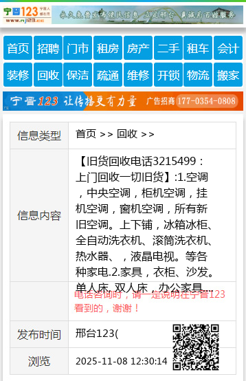 【旧货回收电话3215499:上门回收一切旧货】:1.空调,中央空调,柜机空调,挂机空调,窗机空调,所有新旧空调。上下铺,冰箱冰柜、全自动洗衣机、滚筒洗衣机、热水器、,液晶电视。等各种家电.2.家具,衣柜、沙发。单人床, 双人床,办公家具.3.电脑 ,台式电脑主机,显示器,笔记本,(学校单位及网吧淘汰机).4.饭店桌椅板凳,厨房用品.5.电动车,摩托车,电瓶.6.银行设备,饭店用品,蛋糕房用品,办公家具,单位企业设备, 《拆除代扔废旧家具。》 地址、电话:手机号15531995951 上门回收 【电话咨询时,请一定说明在邢台123看到的,谢谢!】 |