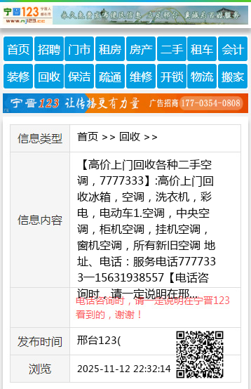 【高价上门回收各种二手空调,7777333】:高价上门回收冰箱,空调,洗衣机,彩电,电动车1.空调,中央空调,柜机空调,挂机空调,窗机空调,所有新旧空调 地址、电话:服务电话7777333一15631938557 【电话咨询时,请一定说明在邢台123看到的,谢谢!】 |
