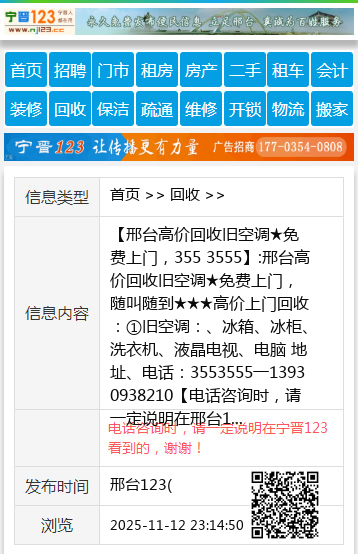 【邢台高价回收旧空调★免费上门,355 3555】:邢台高价回收旧空调★免费上门,随叫随到★★★高价上门回收:①旧空调:、冰箱、冰柜、洗衣机、液晶电视、电脑 地址、电话:3553555一13930938210 【电话咨询时,请一定说明在邢台123看到的,谢谢!】 |