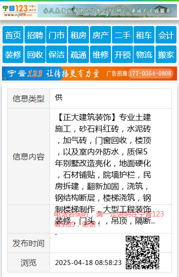 【正大建筑装饰】专业土建施工,砂石料红砖,水泥砖,加气砖,门窗回收,楼顶,以及室内外防水,质保5年别墅改造亮化,地面硬化,石材铺贴,院墙护栏,民房拆建,翻新加固,浇筑,钢结构断层,楼梯浇筑,钢制楼梯制作,大型工程装饰装修,门头,,吊顶,隔断墙,石材,木饰面,小院,楼顶浇筑,钢结构,阳光房,阳光顶制作安装,大型商业拆除,起地面,瓷砖,开门口,钢结构厂房拆除,浇筑墙,浇筑梁切割,工程水钻打眼,各种零活,杂活等…价格合理,诚实守信,欢迎致电,13273673777秦师傅,微信同号 |