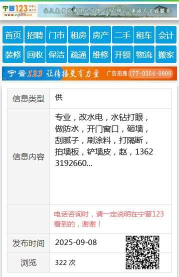 专业改水电安装维修,疏通,测漏、打眼,换阀门、上下水管道改装、暖气、维修;保洁。诚信服务,欢迎来电3035553