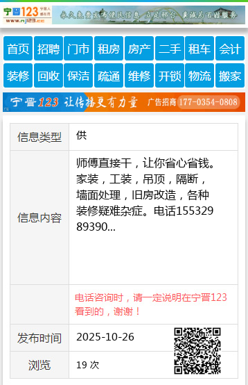师傅直接干,让你省心省钱。家装,工装,吊顶,隔断,墙面处理,旧房改造,各种装修疑难杂症。电话15532989390 【电话咨询时,请一定说明在邢台123看到的,谢谢!】 |