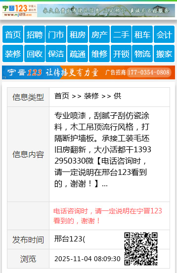 专业喷漆,刮腻子刮仿瓷涂料,木工吊顶流行风格,打隔断护墙板。承接工装毛坯旧房翻新,大小活都干13932950330微 【电话咨询时,请一定说明在邢台123看到的,谢谢!】 |