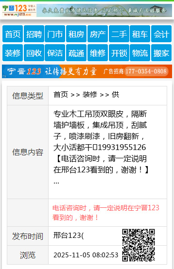 免责声明:本栏目信息由网友自行发布,邢台123不承担任何责任!提高警惕,谨防诈骗!做推广、做信息置顶!请加邢台123客服微信:cnxingtai