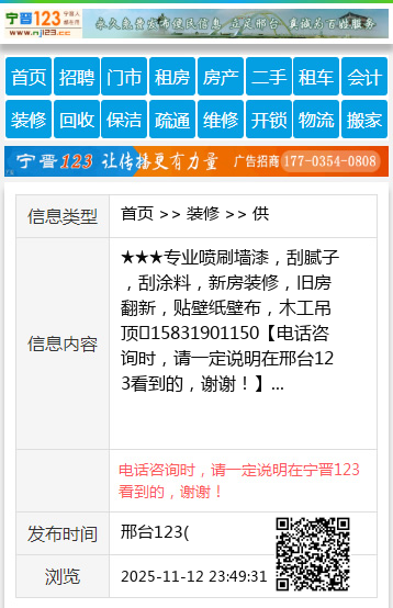 ★★★专业喷刷墙漆,刮腻子,刮涂料,新房装修,旧房翻新,贴壁纸壁布,木工吊顶☎15831901150 【电话咨询时,请一定说明在邢台123看到的,谢谢!】 |