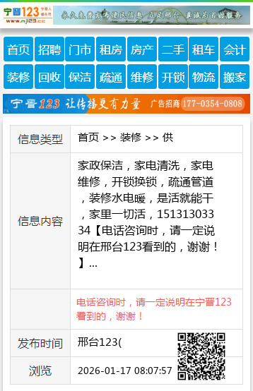 家政保洁,家电清洗,家电维修,开锁换锁,疏通管道,装修水电暖,是活就能干,家里一切活,15131303334 【电话咨询时,请一定说明在邢台123看到的,谢谢!】 |
