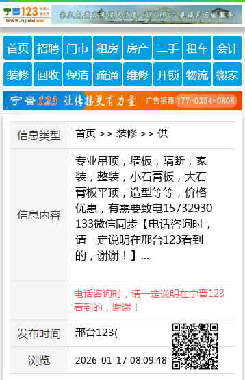 专业吊顶,墙板,隔断,家装,整装,小石膏板,大石膏板平顶,造型等等,价格优惠,有需要致电15732930133微信同步 【电话咨询时,请一定说明在邢台123看到的,谢谢!】 |