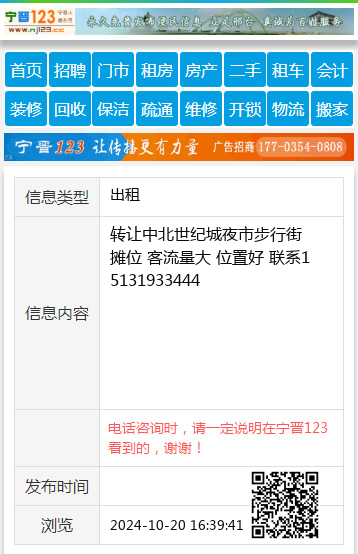 转让中北世纪城夜市步行街摊位 客流量大 位置好 联系15131933444