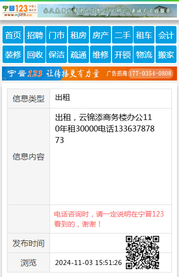 出租,云锦添商务楼办公110年租30000电话13363787873