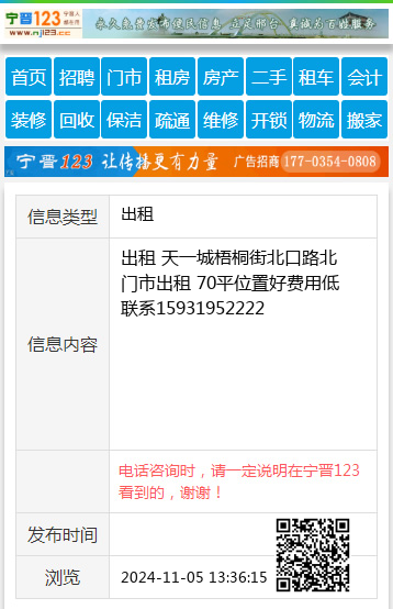 出租 天一城梧桐街北口路北门市出租 70平位置好费用低联系15931952222