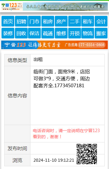 临街门面,面宽9米,店招可做3*9,交通方便,周边配套齐全.17734507181