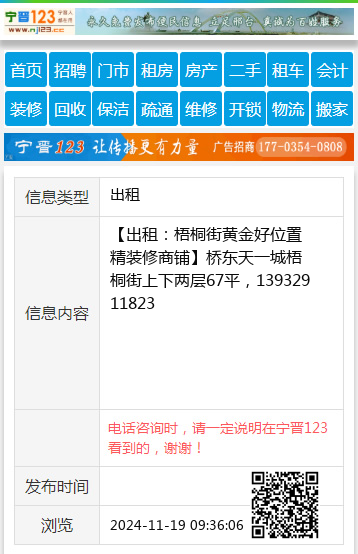 【出租:梧桐街黄金好位置精装修商铺】桥东天一城梧桐街上下两层67平,13932911823