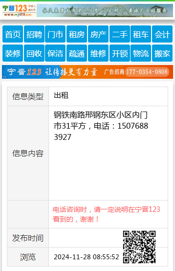 钢铁南路邢钢东区小区内门市31平方,电话:15076883927