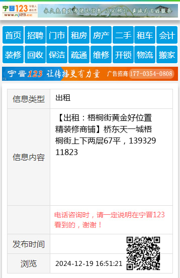 【出租:梧桐街黄金好位置精装修商铺】桥东天一城梧桐街上下两层67平,13932911823