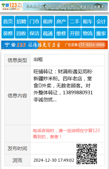 旺铺转让:财满街遇见觅粉·新疆炒米粉。四年老店,堂食➕外卖,无数老顾客。对外整体转让,13899880931非诚勿扰