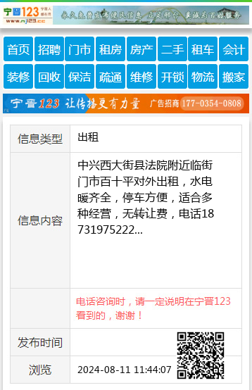 中兴西大街县法院附近临街门市百十平对外出租,水电暖齐全,停车方便,适合多种经营,无转让费,电话18731975222 【电话咨询时,请一定说明在邢台123看到的,谢谢!】 |