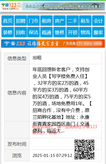 年底回馈新老客户,支持创业人员【写字楼免费入住】,32平方的买2万的酒,45平方的买3万的酒,60平方的买4万的酒,75平方的买5万的酒,场地免费用1年。【招商合作,没有中介费,原兰陌孵化基地】地址:永康街青青家园西区南门(交通便利,临近大学离邢台学院,技师学院,军区学校,还有机电,技师,现代1公里左右),独栋办公楼,双电梯, 共6层3.4.5.6层出租或合作,性价比高。水电齐全,交通便利。简单装修,可整租,可分租。详情面议。适合、公司、直播基地酒店、健康管理、个体公司,共享茶室,培训机构,百业公司等【滨河龙中小企业创业基地】电话15632152345郑女士 |