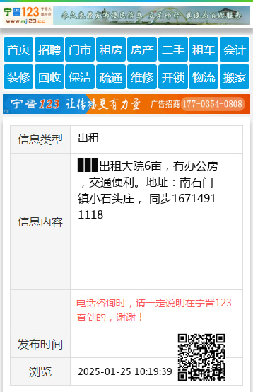 ▉▉▉出租大院6亩,有办公房,交通便利。地址:南石门镇小石头庄, 同步16714911118