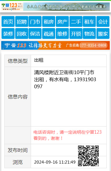 清风楼附近卫衙街10平门市出租,有水有电,13931903097